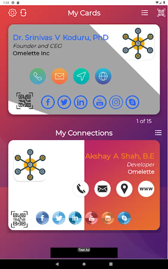 2. Share and receive cards from anywhere and everyone. You can scan QR code to instantly add to your connections and share available via, email and SMS