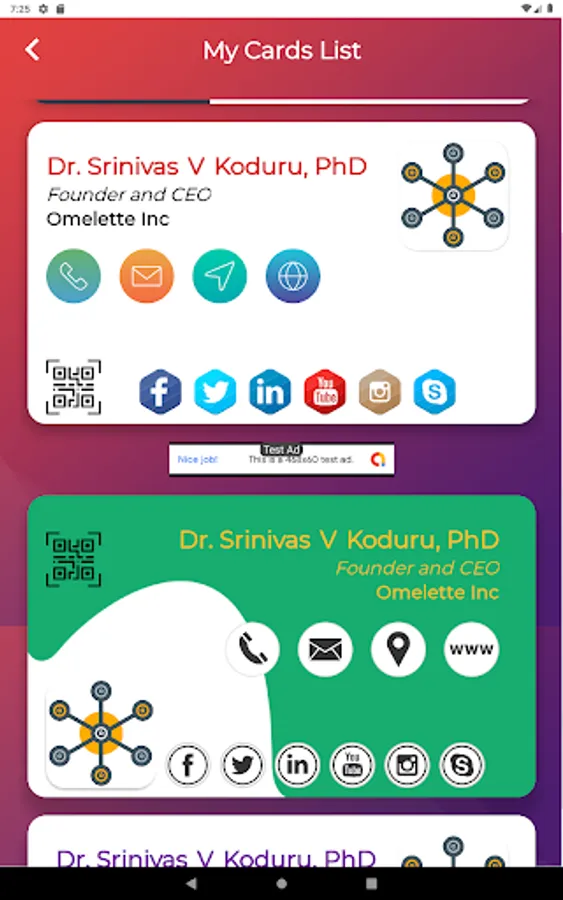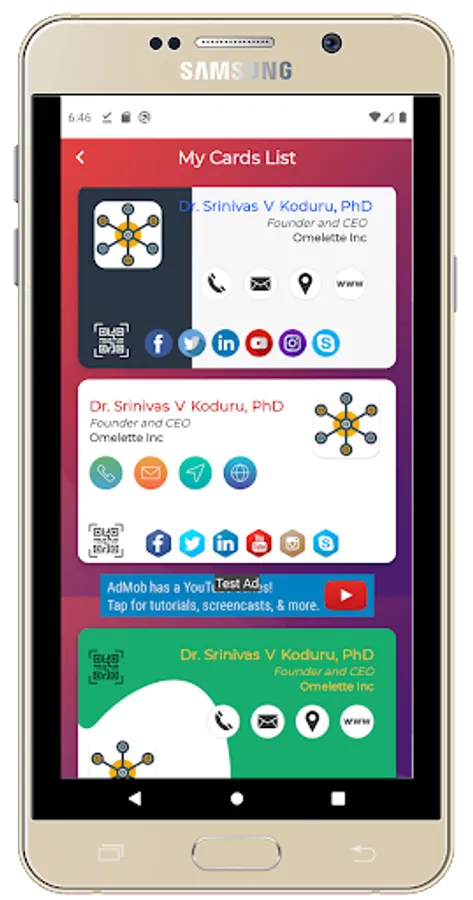 7. You can add up to 6 social media connections to your cards (FB, Twitter, LinkedIn, Instagram, YouTube and Skype)