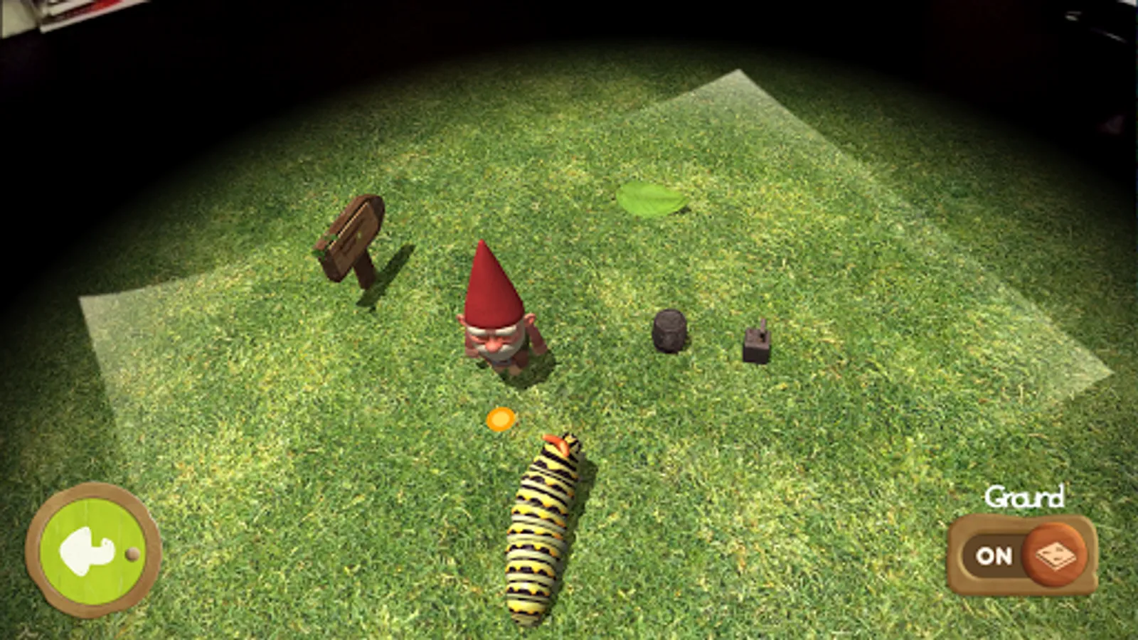 · augmented reality-enabled interactive scene featuring Gnome and various playable elements