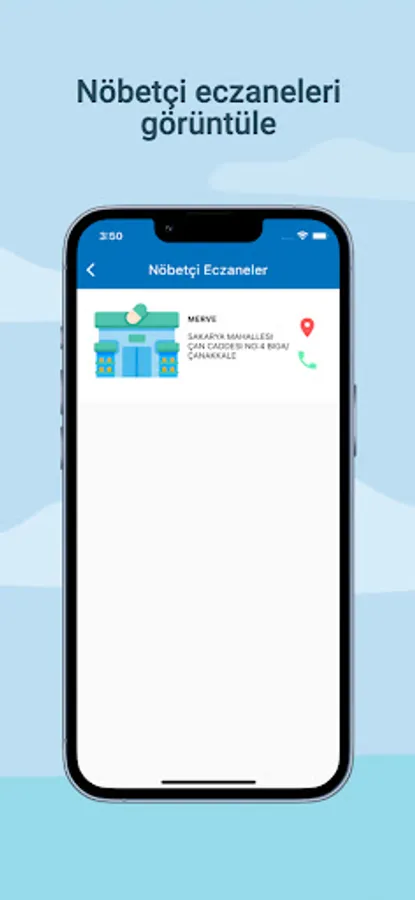Thanks to this application, you can list the pharmacies on duty in the province and district you want. You can reach the phone number of the listed pharmacies and get directions.