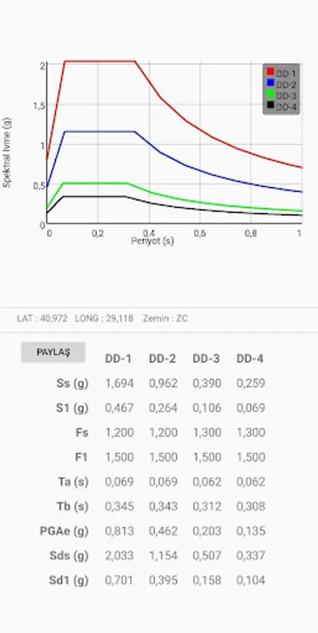 The program determines the Spectral Acceleration values of the coordinate entered according to AFAD 2018 data.