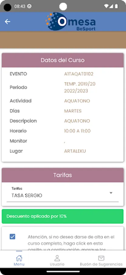 - Courses and activities in which you are enrolled (with possible consultation of payments situation and possibility to unsubscribe).