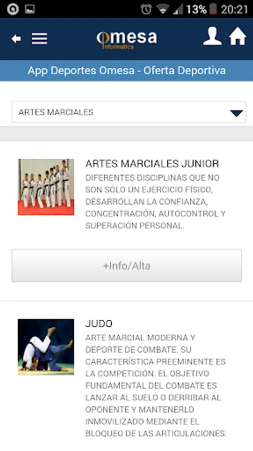 - Courses and activities in which you are registered (with the possibility of consulting the payment situation and the possibility of unsubscribing).