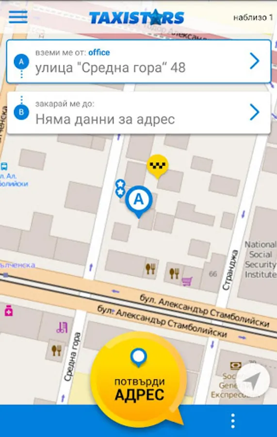 TAXISTARS is the first open network for taxi drivers in South East Europe. Taxistars offers you not a just a new way of taxi booking, but the opportunity to turn your choice of taxi into pleasant and safe experience. Taxistars is the first mobile App in Bulgaria to launch in-app card payments. Taxistars provides you with easy and convenient tools to book taxi, control the quality of taxi services, get access to any taxi company using a single taxi app. Multi-language supports allows you to book orders in more than 8 languages including: English, Spanish, Italian, French, German, Russian, Turkish, Greek and Bulgarian.