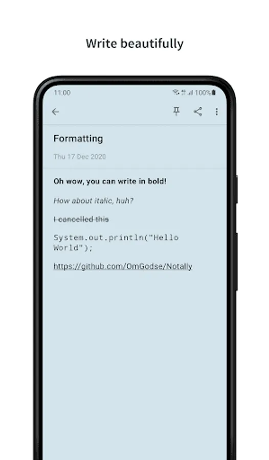 Notally is a minimalistic note taking app with a beautiful material design and powerful features.