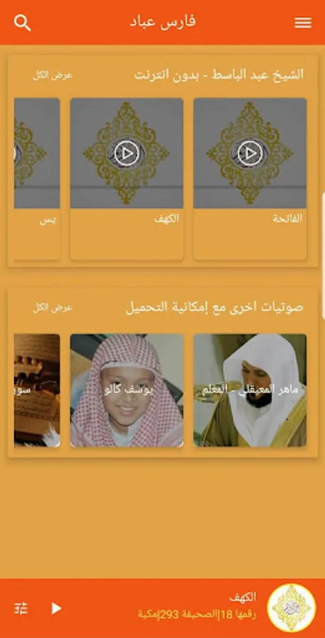 Quran voice Fares Abbad Internet without the advantage of running in the background contains Surat Opening of the Book and the cave and Kassar images