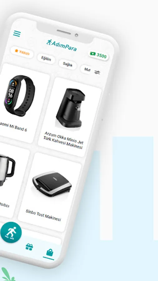 AdimPara app counts your steps using step counting technology on mobile devices and smart watches.