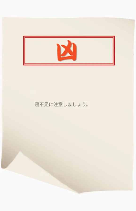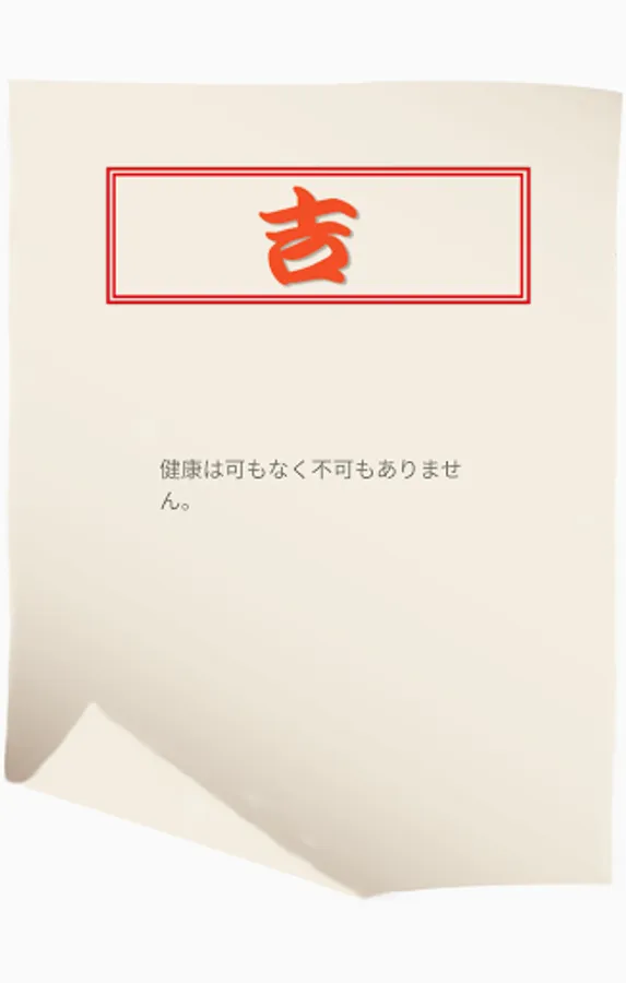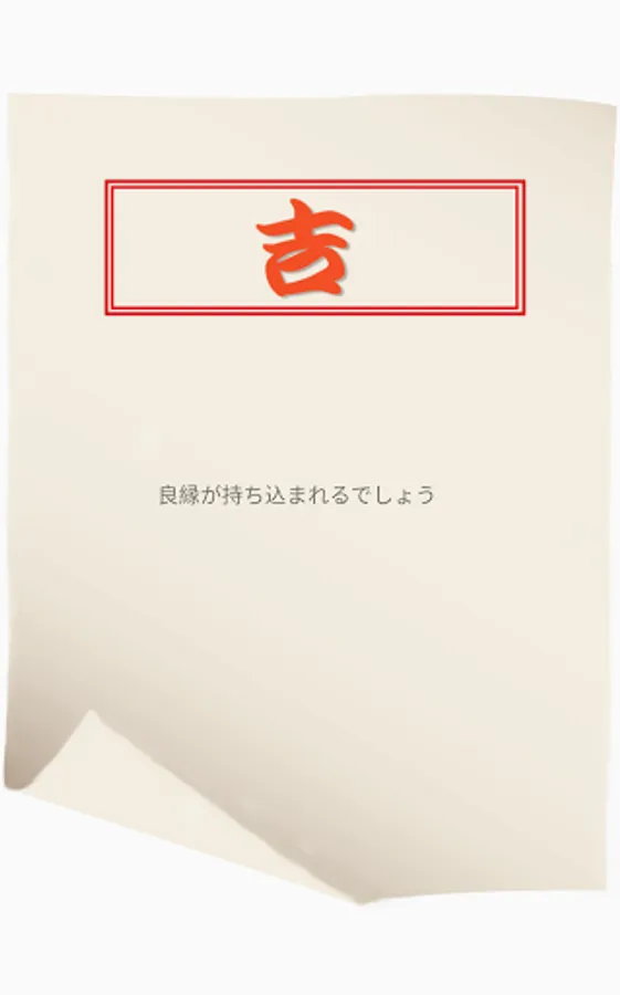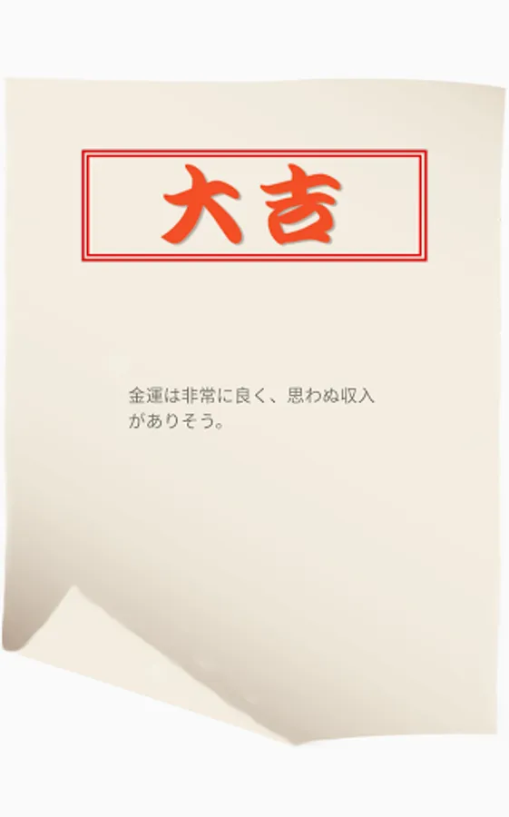 Try your fortune with your first fortune. Press the button to start the omikuji. Depending on your fortune, three types of results, [Kichi], [Daikichi], and [Kyou] are displayed. And what's in store for the future!