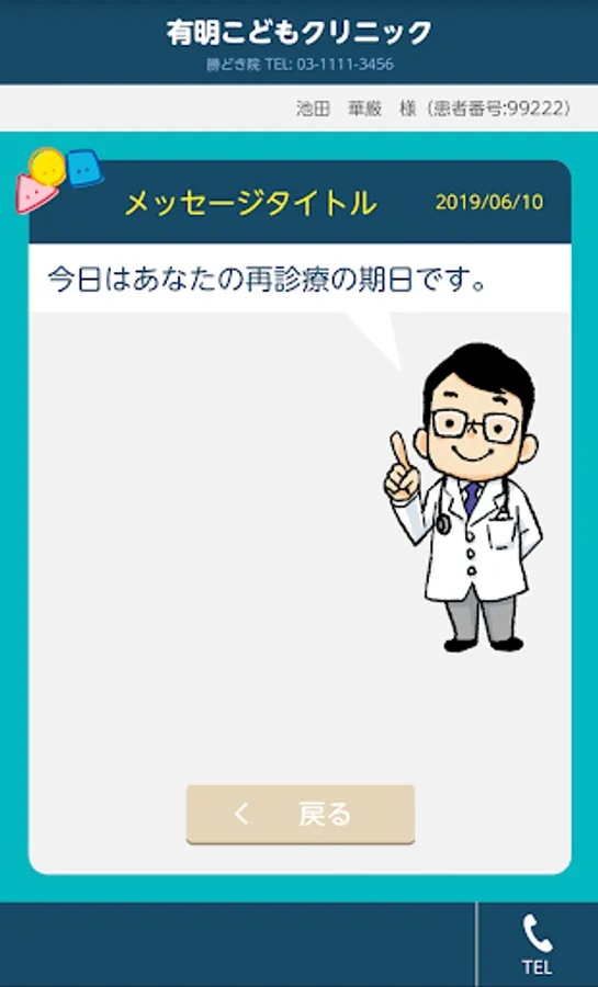 This app was developed by Kleinleben Co., Ltd. and can be used only by patients using Ariake Children's Clinic's clinic, and is an application aimed at improving the patient service.