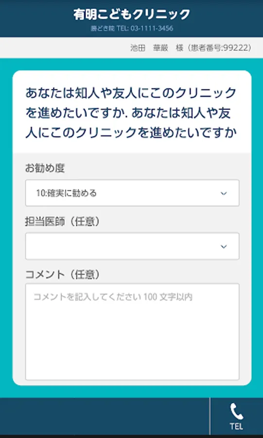 The patient can evaluate the clinic (doctor) by answering the questionnaire notified after completing the examination.