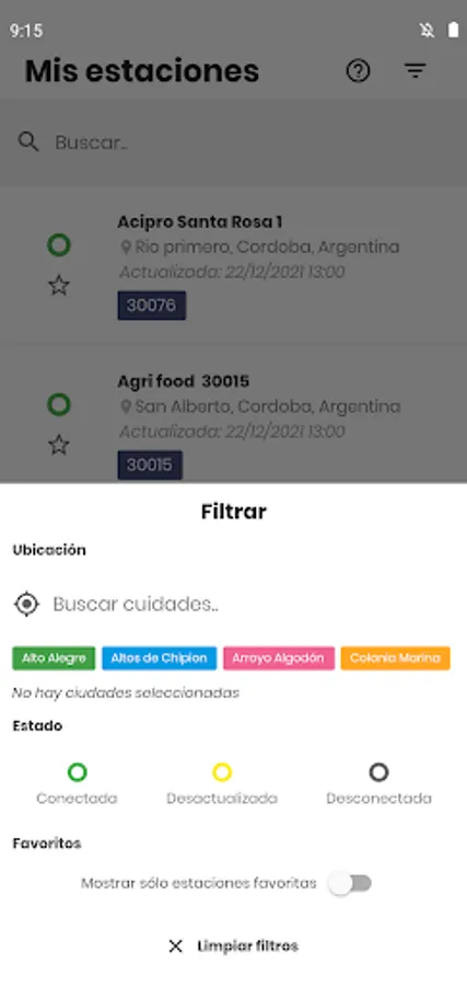 With this app you can view current and historical short-term values obtained through the different stations acquired by the Cordoba Stock Exchange and Cereal Chamber.