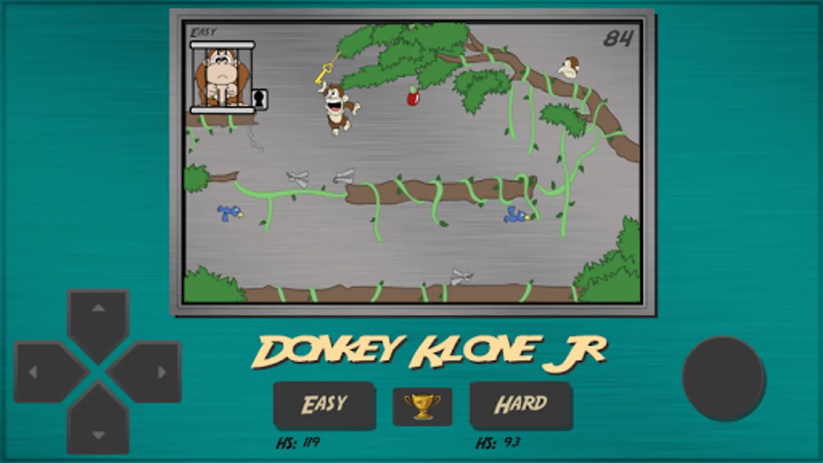 Donkey is locked up in a cage. Junior has to help his papa. He has to evade snapjaws and attacking birds, and open the cage with 4 keys.