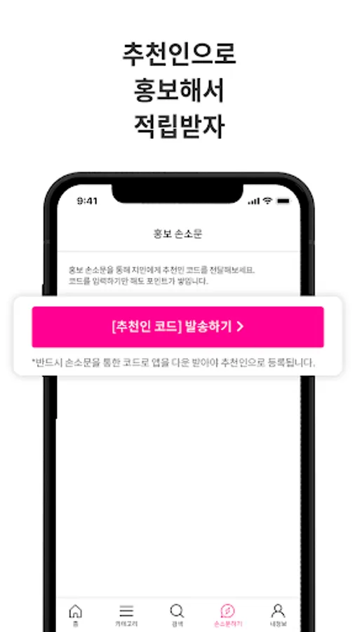Create and share a promotional link with one click. When you sign up as a member through the link I shared, the referral code is automatically registered and you can earn money.
