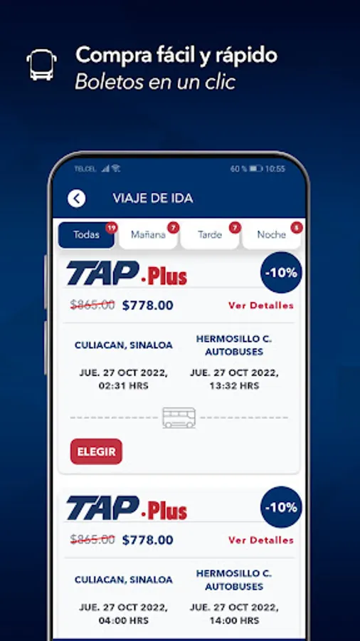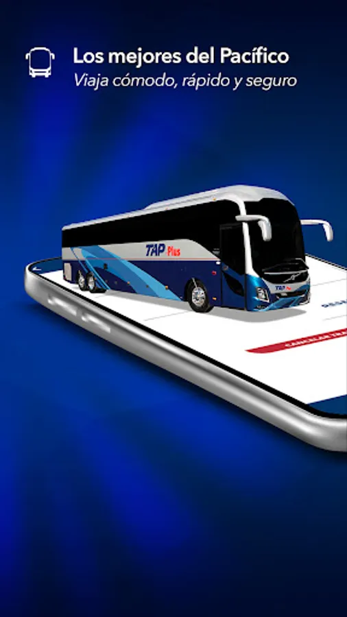 Official application of Transportes y Autobuses del Pacífico - TAP, travel comfortably and safely buying your bus tickets in 3 easy steps, pay over 3 or 6 months without interest with participating cards.
