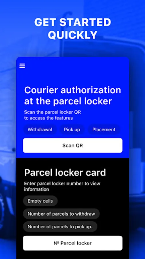 Parcel Pickup: With this feature, couriers can effortlessly locate their assigned locker and the parcels they need to pick up. The app's intuitive interface and real-time updating system ensure that pickups are handled quickly and efficiently.