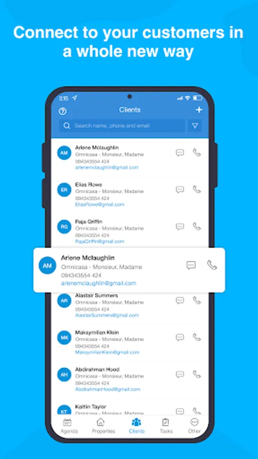 - Support to Auto complete search faster and exactly by: First Name, Last Name, Email, Phones, ..