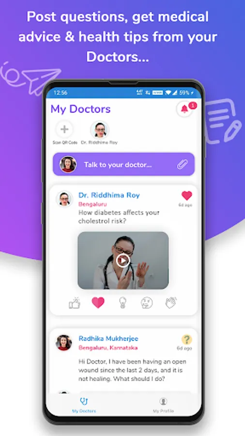 OC Connect lets you stay connected with your doctor, always! Now you can watch videos from your doctor, get tips on disease management and also post questions to your doctor. Following your doctor is as easy as it can get. Scan your doctor's Omnicuris QR Code, and you're done.
