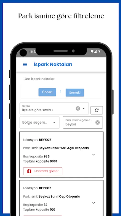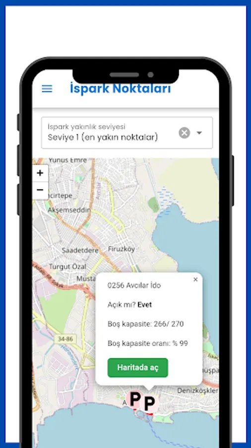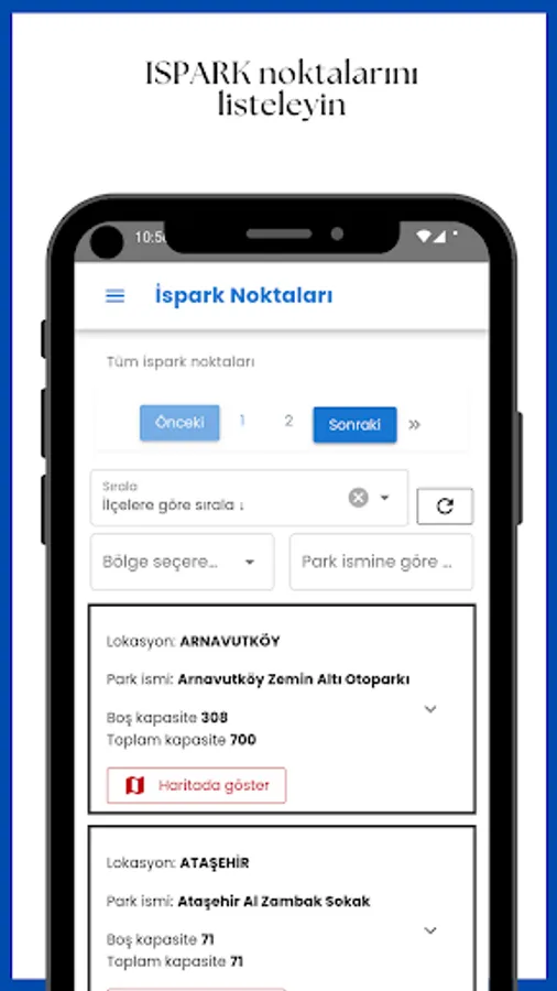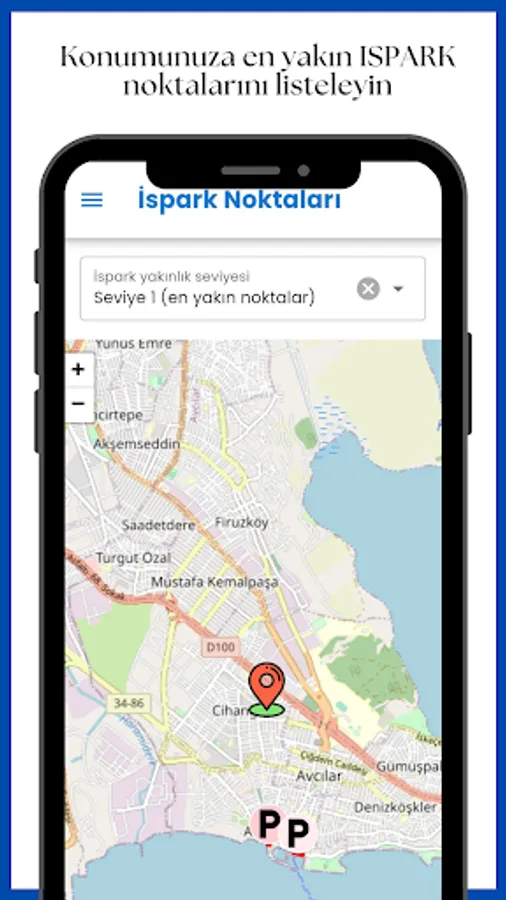 Seeing Isparking Points by District: Filter Isparking points depending on where you are in different districts of Istanbul. Easily focus on the area you need.