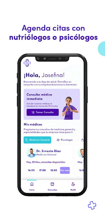 Accessing your company's network of doctors is now easier. With your OmniDoc app for Employees you can schedule general medicine, psychology and nutrition consultations from your cell phone. Create an account with your business email and receive quality medical care for free wherever you are.