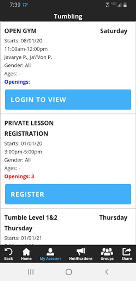 - Have a class in mind? Search by program, level, day, and time. You can register or even put yourself on a wait list.