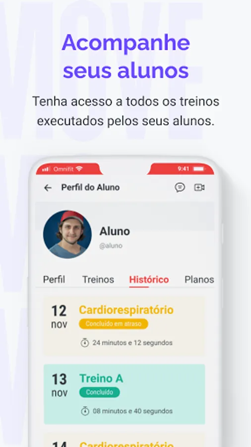 Omnifit is a platform created with all the tools that will make you more productive by doing more with less effort. With automated payment you don't have to worry about receivables, you have access to all the tools needed to be more productive and can track performance of your students. Follow the training and guide your students live by video call.