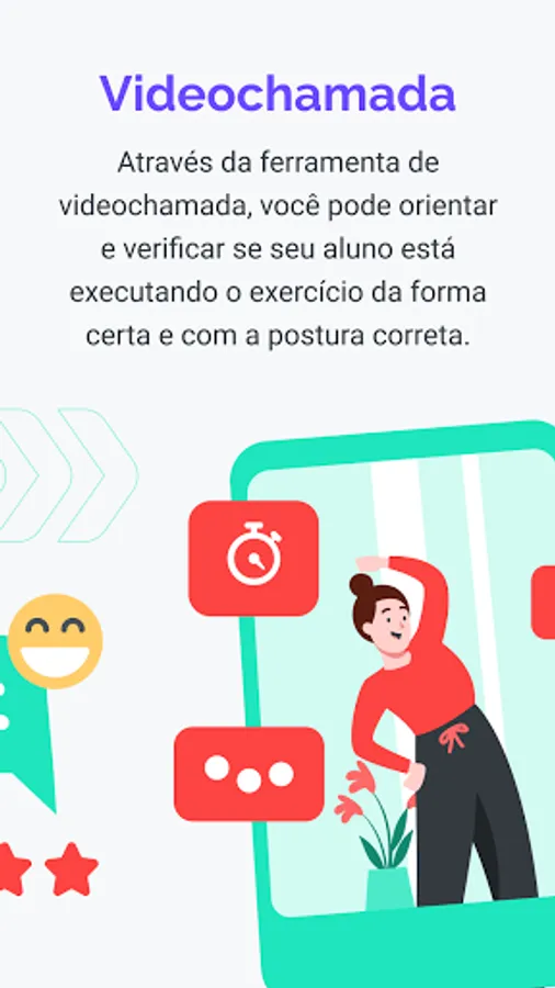 - Through the video call tool, you can guide and verify that your student is performing the exercise in the right way and with the correct posture.
