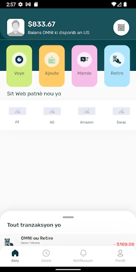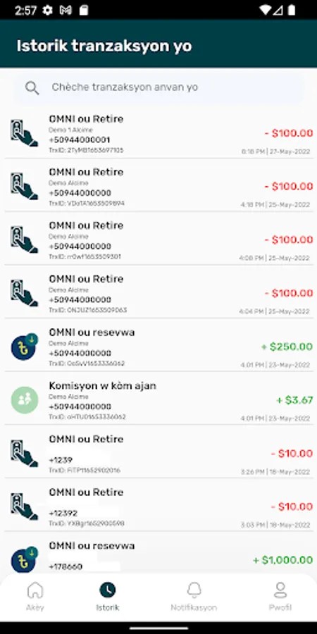 Please, OMNI Kredi is not a wire money agency. When you give money to agents you will receive OMNI as a credit on your account. You can send OMNI to everyone. Anyone with OMNI on their account can sell them to the agents and then receive US dollars instead.
