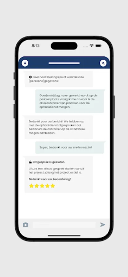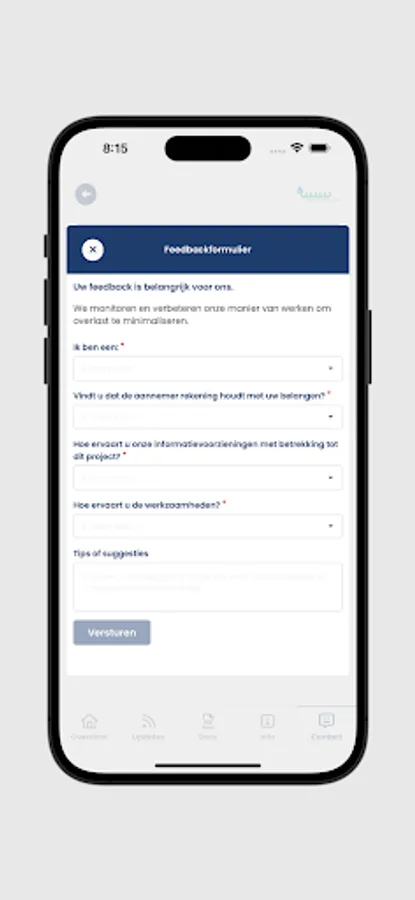 Search the map for projects near you and view all relevant information about the project. Follow the project to receive notifications about progress, disruption or other updates. If you have any questions or comments, you can easily contact the environment manager of the project via chat or by calling directly.