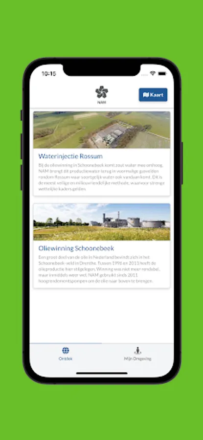 In this environment app you will find all information about certain activities of NAM in your immediate vicinity. The app contains messages, schedules and relevant information about these activities and projects. It is also possible to leave questions, comments or reactions. All information in 1 app to inform the area even better about our activities.
