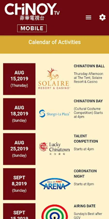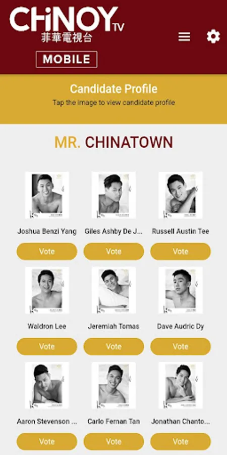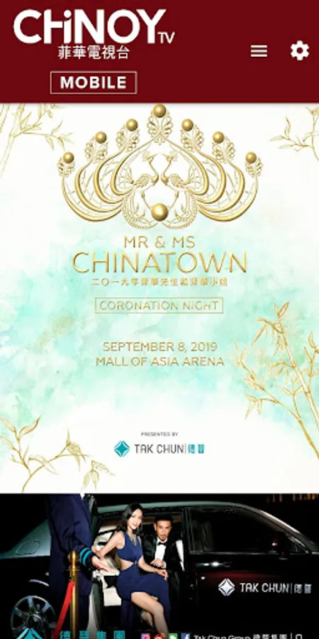 Chinoy TV Mobile is also the official mobile app of Mr. & Ms. Chinatown Philippines. Get up-to-date schedule on the pageant activities and know more about your favorite candidates through their profile, photos and videos. Take the opportunity to support them by voting directly from the app.