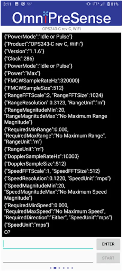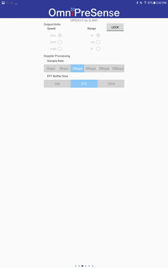 This app supports the OmniPreSense Radar OPS243 sensor with a WiFi interface. The app is used to connect the sensor to your WiFi network, visualize the data, or change the configuration of the sensor. This allows remote placement of the OPS243 radar sensor for applications such as vehicle or people traffic monitoring, security, water level sensing, autonomous vehicle, or other IoT applications.