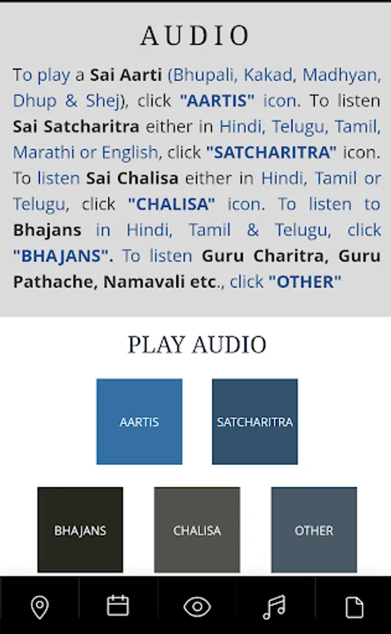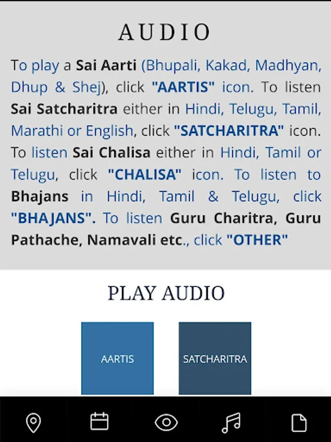 3. Listen Shirdi Aarti(s), Sai Chalisa and Sai Satcharitra in different languages