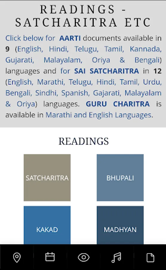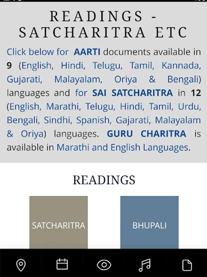 4. Read Shirdi Aarti lyrics, Sai Satcharitra, Guru Charitra in 10 plus languages