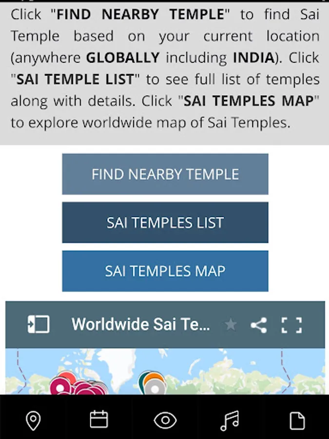 13. Find interactive worldwide Sai Temples map along with turn-by-turn navigation