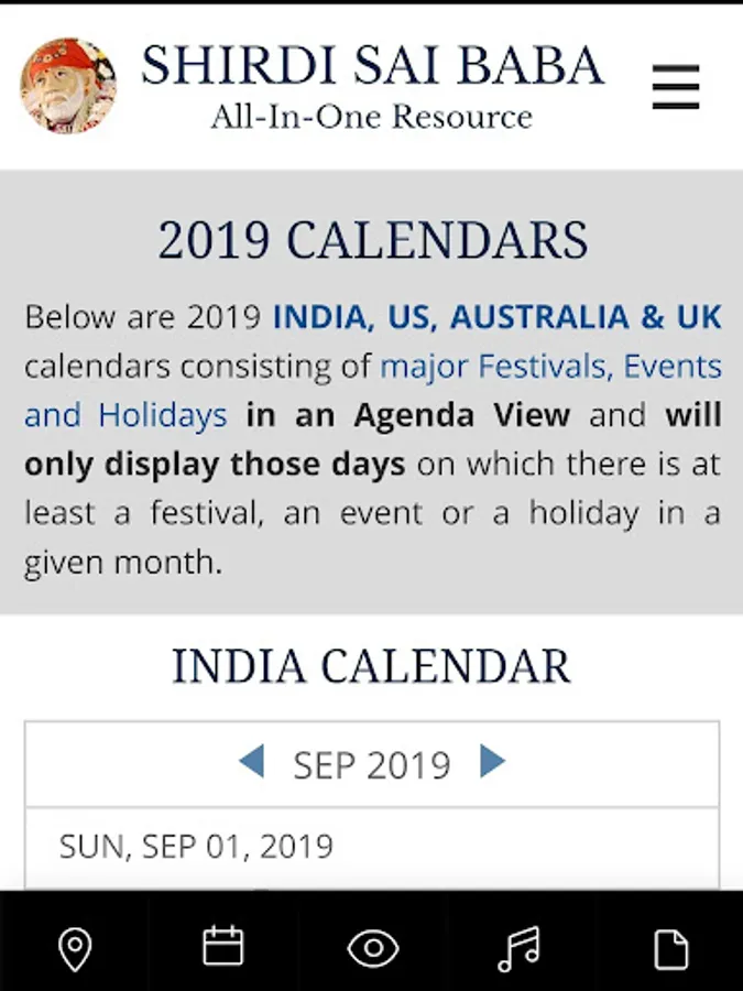 Shirdi Sai Baba All-In-One App is from OmniSai.Org, a US 501(C)(3) Nonprofit Organization. We have App users / Site visitors from 140 countries, 49 states in USA, 29 states in India and from ~2500 cities Worldwide. The most comprehensive Free "App / Resource For And by Sai Volunteers!". No Ads, No Hidden Agenda! We do not collect user data or monetize through any means. Simply experience the best! We intend to never advertise in our apps or on our website and intend to keep this service always FREE.