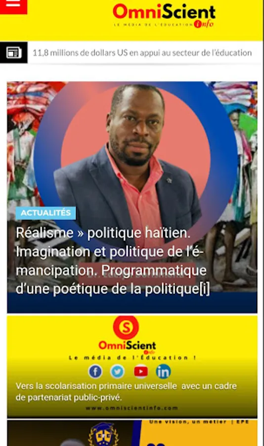 OmniScient Info, est un média en ligne thématique diffusant les actualités du monde l’éducation, de l’enseignement, de la recherche et de la culture en Haïti.