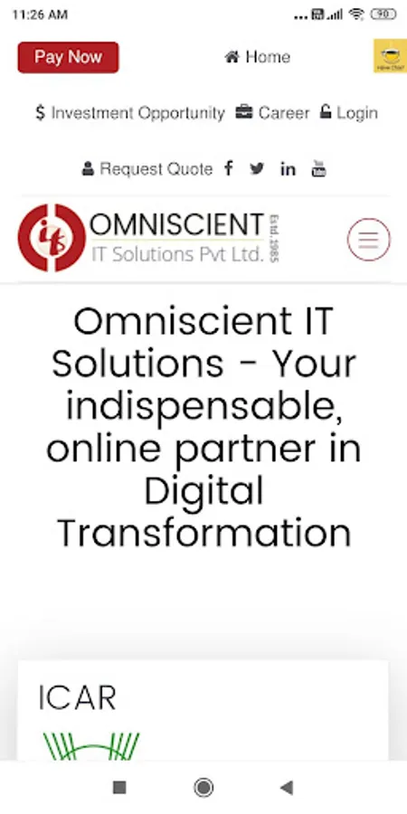 The OITSPL Mobile App is meant to provide ease of access to the users by making available all the information and facilities available on the Omniscient Website easily on their Android mobile phones. By just clicking on the App you can not just view all the products and services offered by the company but also place an order, raise enquiries as per your requirement. The App also facilitates the users to make payments online for the services he/ she is looking for. Pay advance or pay full you can choose to do it your way.