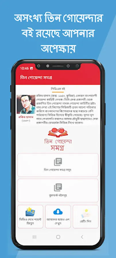 তিন গোয়েন্দা বই প্রেমিদের জন্য তৈরি তিন গোয়েন্দা বই সমগ্র (Tin Goyenda Book)। ঘরে বসেই মন মতন সকল রোমাঞ্চকর তিন গোয়েন্দার কাহিনী পড়ার জন্যই তৈরি। তিন গোয়েন্দা প্রেমিদের জন্য পুরনো বই এখন এক নতুন আঙ্গিকে হাতের মুঠোয় চলে এলো। অনলাইনে অথবা অফলাইনে পড়ার সুবিধাসহ অনেক নতুন নতুন বই এবং ফিচার রয়েছে।