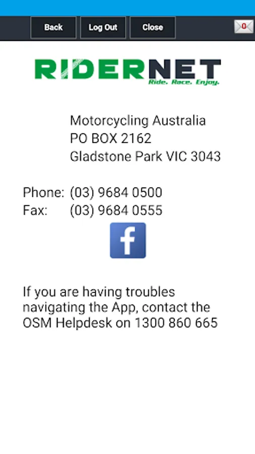 This app allows members of Motorcycling Australia to show their "virtual membership card" when registering for events. Members log in and their card is shown. Contact information for Motorcycling Australia is also available without logging in.