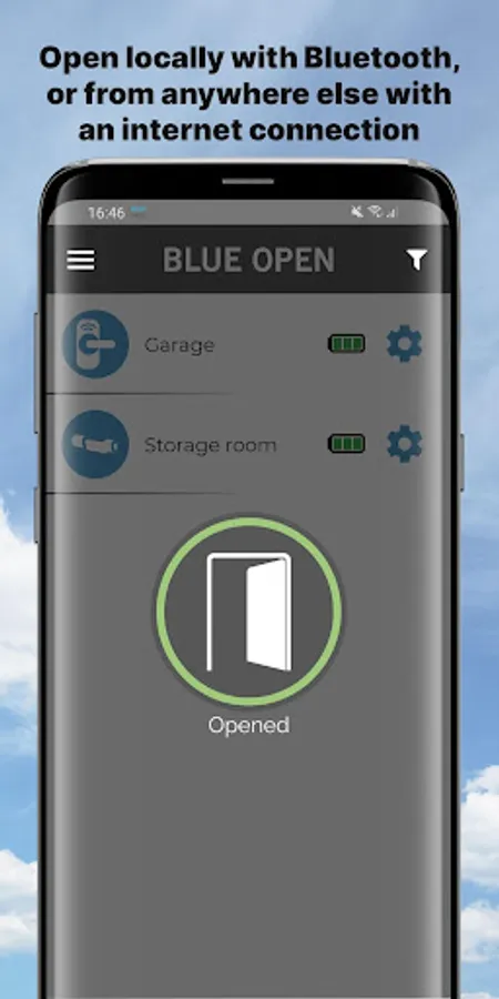 Blueopen is a complete solution that allows you to manage your doors using Bluetooth, so get rid of the Internet dependence. But also, if you want to control your doors from anywhere in the world, you can use it to control your doors using your home Internet connection.