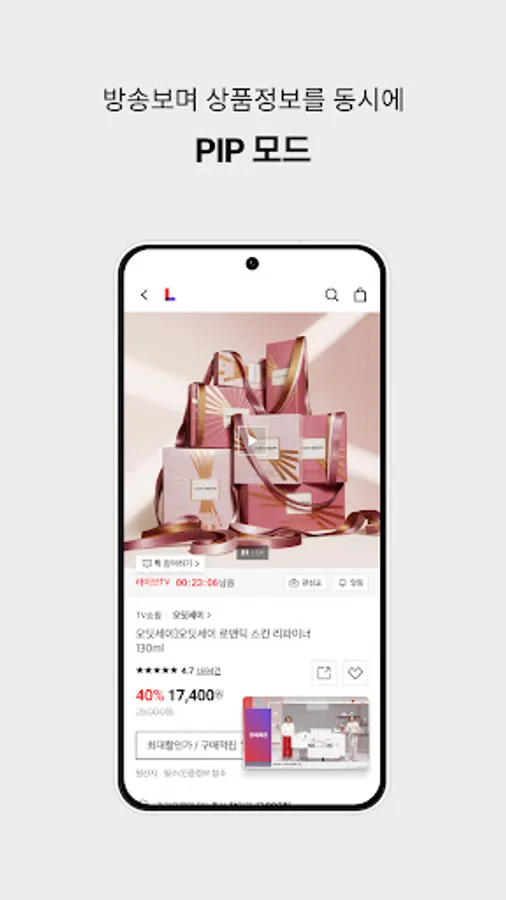 Product information in PIP mode. search. You can watch the broadcast without missing it while making a purchase.
