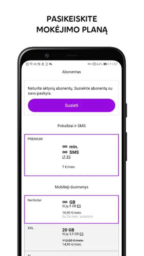 Svarbu žinoti, kad programėlės atsisiuntimas ir naudojami duomenys bus apmokestinti pagal jūsų turimo interneto plano telefone tarifus.