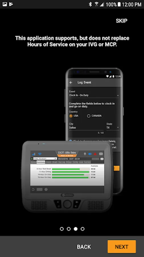 This free application is compatible with Omnitracs IVG and MCP units. And you can use the same credentials provided by your Administrator for the In-Cab Unit.