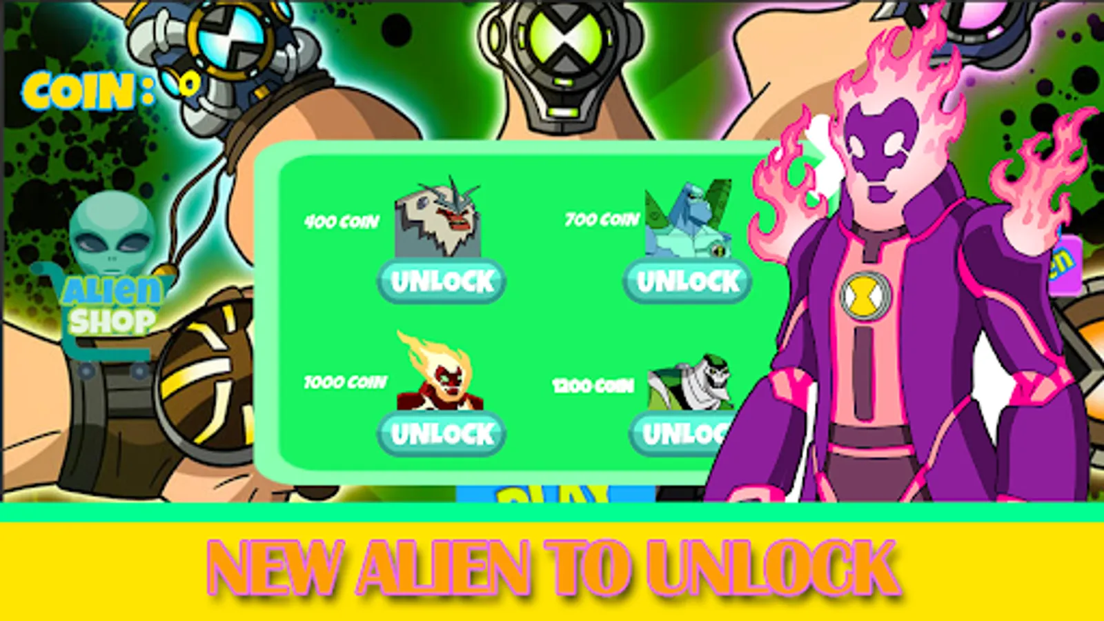The world in danger, the town has ben destroyed but humanity and friendship with alien will save the world, you have been chosen as hero to save planet, obtain the power of 10 alien and face the dark alien, you have to defeat the bad alien to make sure our world save, there's cool alien wait to collaborating with you.