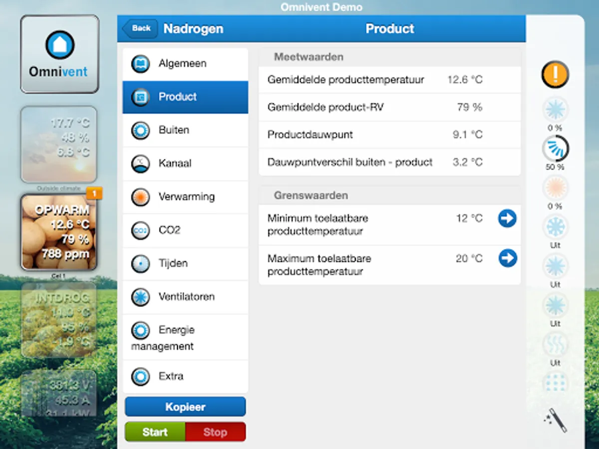 Where produce storage is concerned, arable farmers are confronted with more and more data and variables that can affect the quality of their produce. Dealing effectively with outdoor and indoor temperatures, relative humidity and CO₂ concentration is not always easy. Along with these known variables, factors such as ventilation capacity, air flow, energy consumption and expected weather conditions play a considerable role in the quest for optimal yield. The quality of the stored produce is also affected by local and produce-specific aspects, such as soil type, variety and the conditions when the produce is put into storage.
