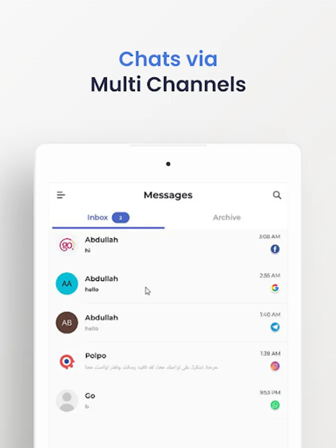 Send and reply to your client's Messages via Live chat, WhatsApp, Instagram DM, Facebook Messenger, Twitter, Google Messages, Telegram, Viber, Line, WeChat, Slack, and tickets from a single platform that supports multiple agents and departments.