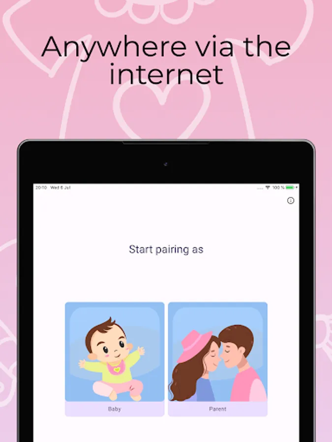 You may use two devices (for example one mother phone, one father phone) to use them as baby monitor in any place with internet coverage!