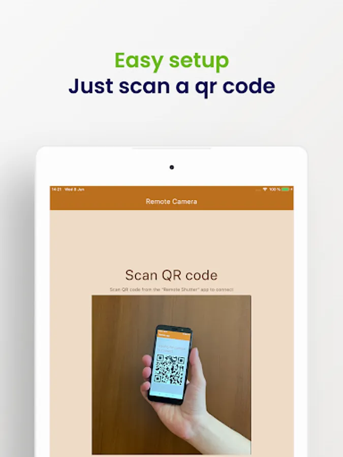 Remote control the phone/ipad camera shutter from your smartphone and take a picture and videos.
