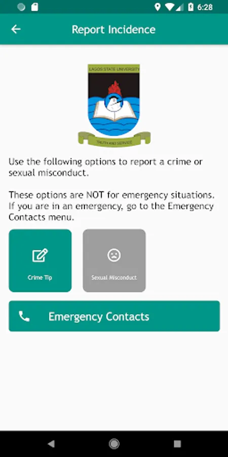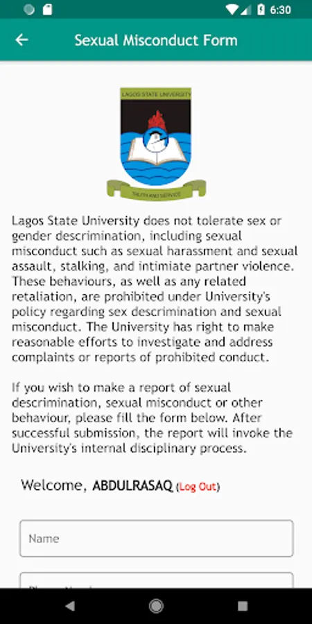 3. SEXUAL HARASSMENT: This section allows you to report any sexual misconducts experienced on campus. The report will be dispatched to the appropriate quarters and will invoke the University’s internal investigative processes. Other report validation techniques are also included.