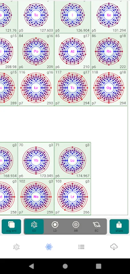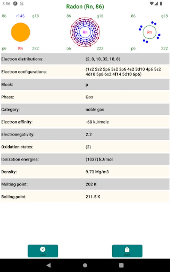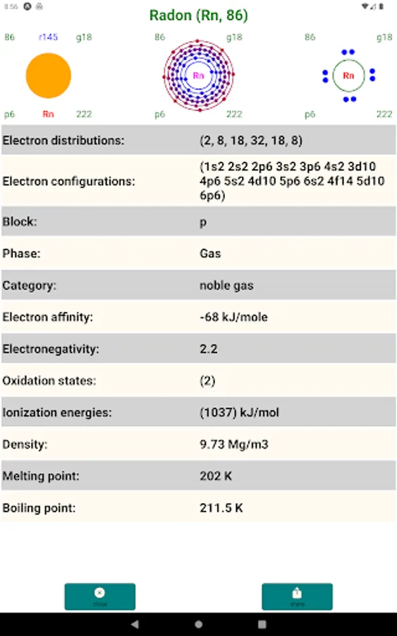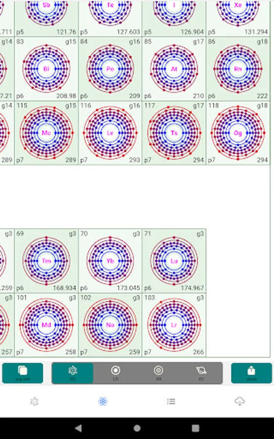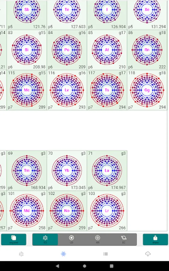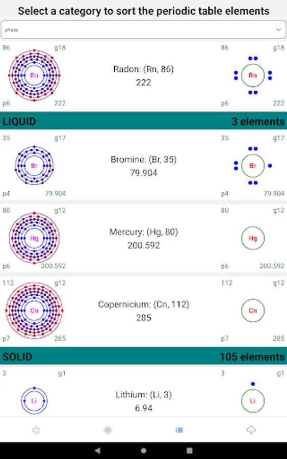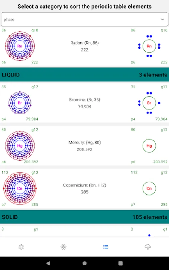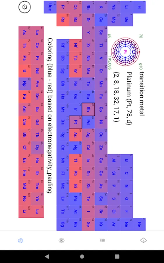 Drag your finger on the periodic table canvas to update elements automatically or tap on an element to see more details.